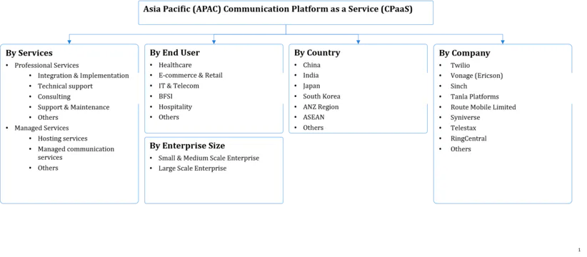 By Services (Professional Services (Integration & Implementation, Technical support, Consulting, Support & Maintenance, Others), Managed Services (Hosting service, Managed communic......ation services, Others)), By Enterprise Size (Small & Medium Scale Enterprise, Large Scale Enterprise), By End User (Healthcare, E-commerce & Retail, IT & Telecom, BFSI, Hospitality, Others (Media & Entertainment, Manufacturing, etc.)), By Country (China, India , Japan, South Korea, ANZ Region, ASEAN Region, Others), By Company (Twilio, Vonage (Ericson) , Sinch, Tanla Platforms, Route Mobile, Telestax, Syniverse, RingCentral, Others) Read more