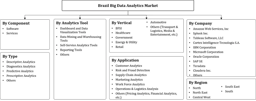 Brazil Big Data Analytics Market Report - By Component (Software, Services), By Type (Descriptive Analytics, Diagnostics Analytics, Predictive Analytics, Prescriptive Analytics, Ot......hers), By Analytics Tool (Dashboard and Data Visualization Tools, Data Mining and Warehousing Tools, Self-Service Analytics Tools, Reporting Tools, Others), By Application (Customer Analytics, Risk and Fraud Detection, Supply Chain Analytics, Marketing Analytics, Workforce Analytics, Operations & Logistics Analysis, Others (Pricing Analytics, Financial Analytics, etc.)), By Vertical (BFSI, Healthcare, Government, Energy & Utility, Retail, Automotive, Others (Transport & Logistics, Media & Entertainment, etc.)), and Others Read more