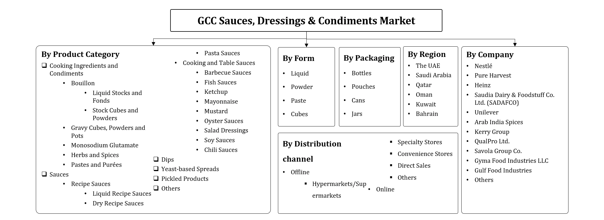 | Top Key Players | Nestlé, Pure Harvest, Heinz, Saudia Dairy & Foodstuff Co. Ltd. (SADAFCO), Unilever, Arab India Spices, Kerry Group, QualPro Ltd., Savola Group Co., Gyma Food Industries LLC, Gulf Food Industries, Others |