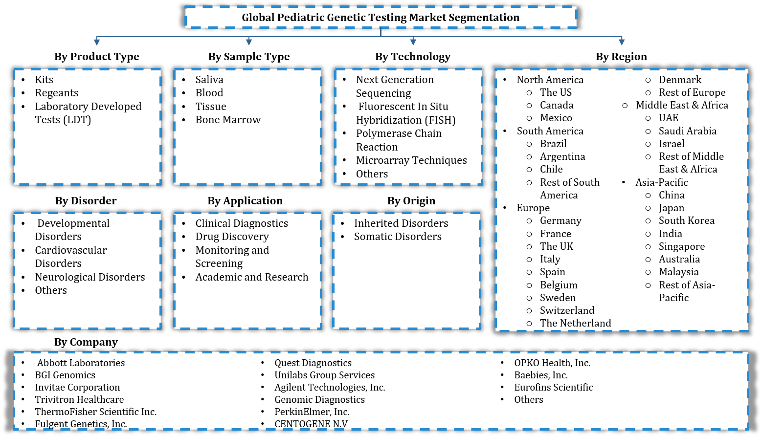 By Product Type (Kits, Reagents, Laboratory Developed Tests [LDT]), By Sample Type (Saliva, Blood, Tissue, Bone Marrow), By Technology (Next Generation Sequencing, Fluorescent In S......itu Hybridization [FISH], Polymerase Chain Reaction, Microarray Techniques, Others), By Disorder (Developmental Disorders, Cardiovascular Disorders, Neurological Disorders, Others), By Application (Clinical Diagnostics, Drug Discovery, Monitoring and Screening, Academic and Research), By Origin (Inherited Disorders, Somatic Disorders), By Region (North America, South America, Europe, Middle East & Africa, Asia-Pacific), By Company (Abbott Laboratories, BGI Genomics, Invitae Corporation, Trivitron Healthcare, Thermo Fisher Scientific Inc., Fulgent Genetics, Inc., Quest Diagnostics, Unilabs Group Services, Agilent Technologies, Inc., Genomic Diagnostics, PerkinElmer, Inc., CENTOGENE N.V, OPKO Health, Inc., Baebies, Inc., Eurofins Scientific) Read more