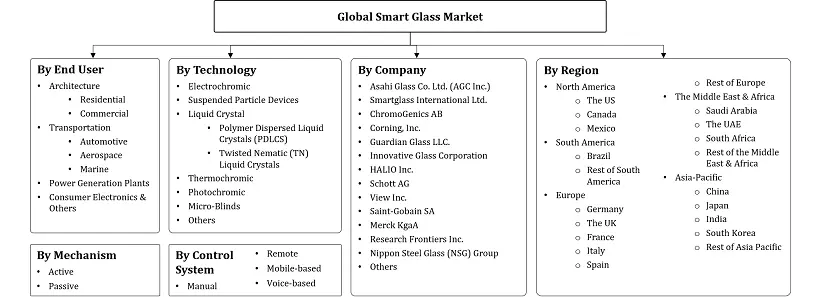 | Key Companies Profiled | Asahi Glass Co. Ltd. (AGC Inc.), Smartglass International Ltd., ChromoGenics AB, Corning, Inc., Guardian Glass LLC., Innovative Glass Corporation, HALIO Inc., Schott AG, View Inc., Saint-Gobain SA, Merck KgaA, Research Frontiers Inc., Nippon Steel Glass (NSG) Group, and others |