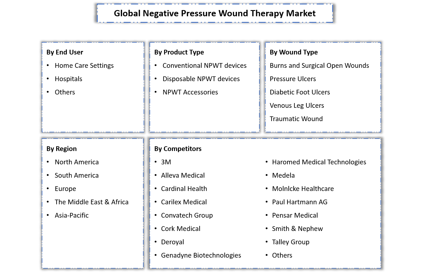 By Product Type (Conventional NPWT devices, Disposable NPWT devices, NPWT Accessories), By Wound Type (Burns and Surgical Open Wounds, Pressure Ulcers, Diabetic Foot Ulcers, Venous...... Leg Ulcers, Traumatic Wound), By End User (Home Care Settings, Hospitals, Others), By Region (North America, South America, Europe, The Middle East & Africa, Asia-Pacific), By Company (3M, Alleva Medical, Cardinal Health, Carilex Medical, Convatech Group, Cork Medical, Deroyal, Genadyne Biotechnologies, Haromed Medical Technologies, Medela, Molnlcke Healthcare, Paul Hartmann AG, Pensar Medical, Smith & Nephew, Talley Group, Others.) Read more
