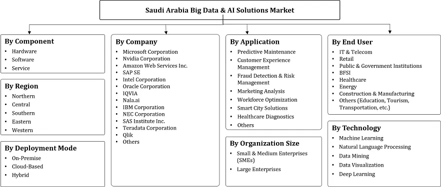 Saudi Arabia Big Data & AI Solutions Market Report - By Organization Size (Small & Medium Enterprises (SMEs), Large Enterprises), By Application (Predictive Maintenance, Customer E......xperience Management, Fraud Detection & Risk Management, Marketing Analysis, Workforce Optimization, Smart City Solutions, Healthcare Diagnostics, Others), By Technology (Machine Learning, Natural Language Processing, Data Mining, Data Visualization, Deep Learning), By Component (Hardware, Software, Service), By Deployment Mode (On-Premise, Cloud Based, Hybrid), By End User (IT & Telecom, Retail, Public & Government Institutions, BFSI, Healthcare, Energy, Construction & Manufacturing, Others (Education, Tourism, Transportation, etc.)) and Others Read more