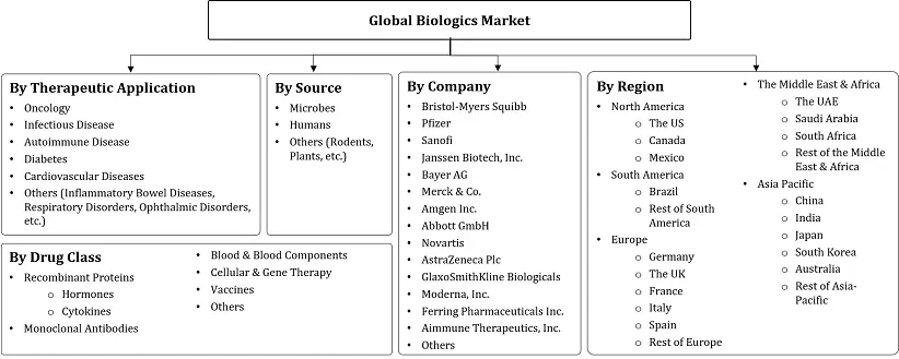 Biologics Market - By Therapeutic Application (Oncology, Infectious Disease, Autoimmune Disease, Diabetes, Cardiovascular Diseases, Others (Inflammatory Bowel Diseases, Respiratory Disorders, Ophthalm... ... Disorders, Ophthalmic Disorders, etc.)), By Drug Class (Recombinant Proteins, [Hormones, Cytokines], Monoclonal Antibodies, Blood & Blood Components, Cellular & Gene Therapy, Vaccines, Others), By Source (Microbes, Humans, Others (Rodents, Plants, etc.)), Others Read more