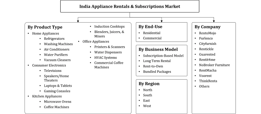 India Appliance Rentals & Subscriptions Market - By Product Type (Home Appliances, (Refrigerators, Washing Machines, Air Conditioners, Water Purifiers, Vacuum Cleaners), Consumer Electronics (Televisi... ... lectronics (Televisions, Speakers/Home Theatres, Laptop & Tablets, Gaming Consoles), Kitchen Appliances (Microwave Ovens, Coffee Machines, Induction Cooktops, Blenders, Juicers, & Mixers), Office Appliances (Printers & Scanners, Water Dispensers, HVAC Systems, Commercial Coffee Machines), By End-Use (Residential, Commercial), By Business Model (Subscription-Based Model, Long Term Rental, Rent-to-Own, Bundled Packages), and others Read more
