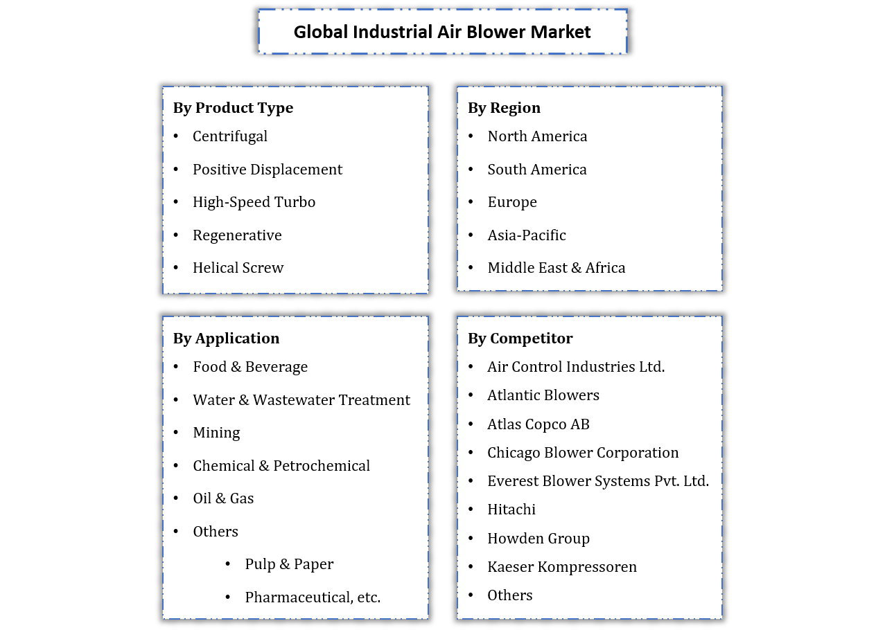 By Product Type (Centrifugal, Positive Displacement, High-Speed Turbo, Regenerative, Helical Screw), By End-User (Food & Beverage, Water & Wastewater Treatment, Mining, Chemical & Petrochemical, Oil &... ... Petrochemical, Oil & Gas, Others (Pulp & Paper, Pharmaceutical, etc.)), By Region (North America, Europe, Asia-Pacific, South America, Middle East & Africa), By Company (Air Control Industries Ltd., Atlantic Blowers, Atlas Copco AB, Chicago Blower Corporation, Everest Blower Systems Pvt. Ltd., Hitachi, Howden Group, Kaeser Kompressoren, Shandong Huadong Blower Co. Ltd., Xylem Inc.) Read more