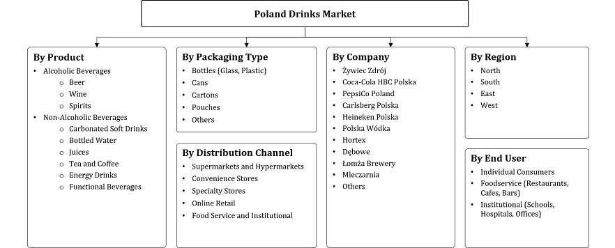 Poland Drinks Market - By Product Type (Alcoholic Beverages [Beer, Wine, Spirits], Non-Alcoholic Beverages [Carbonated Soft Drinks, Bottled Water, Juices, Tea and Coffee, Energy Drinks, Functional Bev... ... inks, Functional Beverages]), By End User (Individual Consumers, Foodservice, Institutional), By Packaging Type (Bottles, Cans, Cartons, Pouches, Others), By Distribution Channel (Supermarkets and Hypermarkets, Convenience Stores, Specialty Stores, Online Retail, Food Service and Institutional) and others Read more