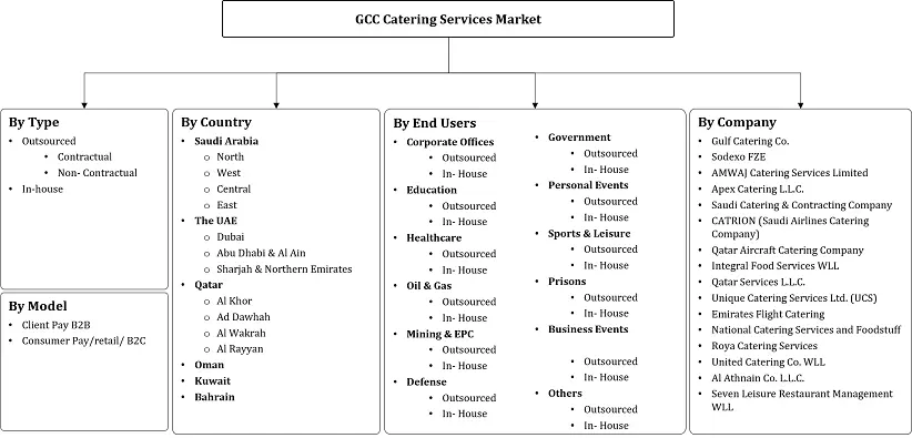 | Top Key Players | Gulf Catering Co., Sodexo FZE, AMWAJ Catering Services Limited, Apex Catering L.L.C., Saudi Catering & Contracting Company, CATRION (Saudi Airlines Catering Company), Qatar Aircraft Catering Company, Integral Food Services WLL, Qatar Services L.L.C., Unique Catering Services Ltd. (UCS), Emirates Flight Catering, National Catering Services and Foodstuff, Roya Catering Services, United Catering Co. WLL, Al Athnain Co. L.L.C., Seven Leisure Restaurant Management WLL, Nesma United Industry (Catering Services) |