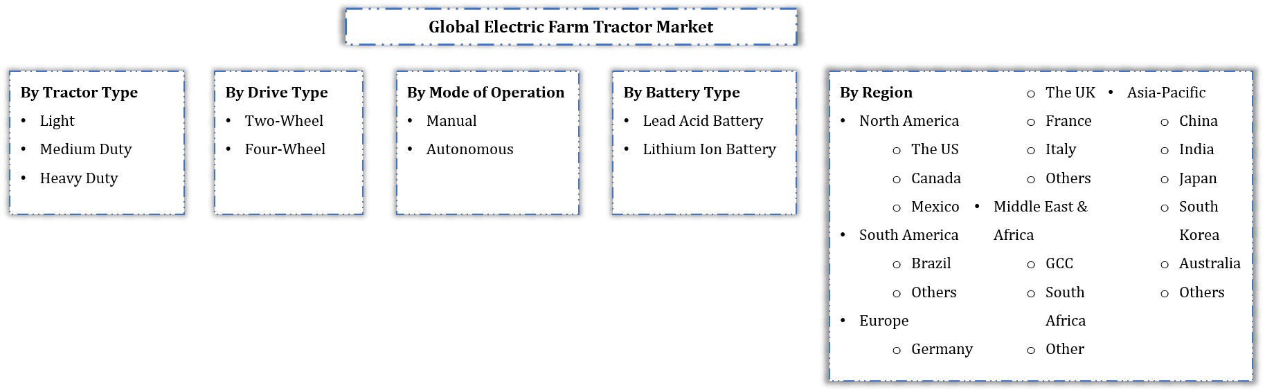 By Tractor Type (Light, Medium Duty, Heavy Duty), By Drive Type (Two-Wheel, Four-Wheel), By Mode of Operation (Manual, Autonomous), By Battery Type (Lead Acid Battery, Lithium-Ion......Battery), By Region (North America, South America, Europe, Asia-Pacific, Middle East & Africa), By Country (U.S, Canada, Brazil, Mexico, Germany, France, The U.K, Italy, China, India, Japan, Australia, South Korea, GCC, South Africa), By Competitors (John Deere, Alke, Escorts Limited, Motivo Engineering, Monarch Tractor, Mahindra and Mahindra, Solectrac, Fendt, Kubota Corporation) Read more