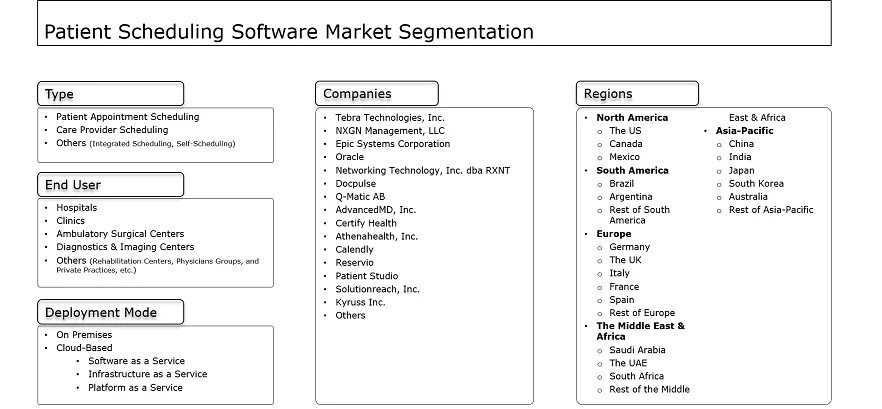 | Top Key Players | Tebra Technologies, Inc., NXGN Management, LLC, Epic Systems Corporation, Oracle, Networking Technology, Inc. dba RXNT, Docpulse, Q-Matic AB, AdvancedMD, Inc., Certify Health, Athenahealth, Inc., Calendly, Reservio, Solutionreach, Inc., Kyruss Inc., and others |
