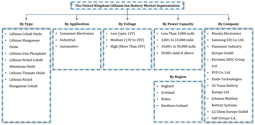 UK Lithium-Ion Battery Market - By Type (Lithium Cobalt Oxide, Lithium Manganese Oxide, Lithium Iron Phosphate, Lithium Nickel Cobalt Aluminum Oxide, Lithium Titanate Oxide, Lithiu......m Nickel Manganese Cobalt), By Application (Consumer Electronics, Industrial, Automotive), By Voltage (Low (upto 12V), Medium (13V to 35V), High (More Than 35V)), By Power Capacity (Less Than 3,000 mAh, 3,000 to 10,000 mAh, 10,000 to 50,000 mAh, 50,000 mAh & Above), and others Read more
