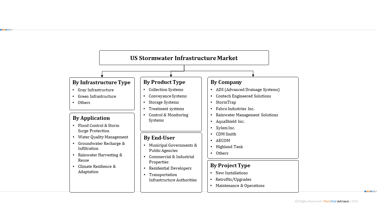 US Stormwater Infrastructure Market - By Infrastructure Type (Gray Infrastructure, Green Infrastructure, Others (Hybrid Infrastructure, Smart Infrastructure, etc.)), By Product Type (Collection System... ... e (Collection Systems, Conveyance Systems, Storage Systems, Treatment Systems, Control & Monitoring Systems), By Application (Flood Control & Storm Surge Protection, Water Quality Management, Groundwater Recharge & Infiltration, Rainwater Harvesting & Reuse, Climate Resilience & Adaptation), By End-User (Municipal Governments & Public Agencies, Commercial & Industrial Properties, Residential Developers, Transportation Infrastructure Authorities), By Project Type (New Installations, Retrofits/Upgrades, Maintenance & Operations), and others Read more