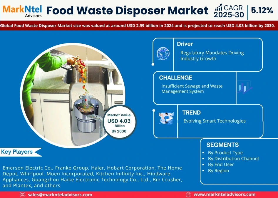 - Global Food Waste Disposer Market Report by MarkNtel Advisors provides a detailed & thorough analysis of market size & share, growth rate, competitive landscape, and key players. This comprehensive analysis helps businesses gain a holistic understanding of the market dynamics & make informed decisions.