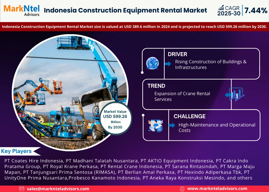 - Indonesia Construction Equipment Rental Market Report by MarkNtel Advisors provides a detailed & thorough analysis of market size & share, growth rate, competitive landscape, and key players. This comprehensive analysis helps businesses gain a holistic understanding of the market dynamics & make informed decisions.